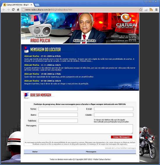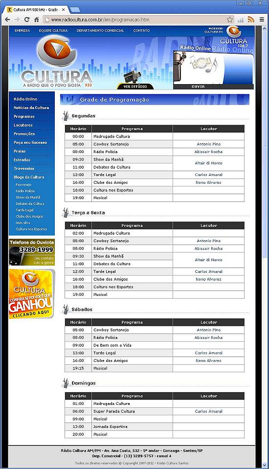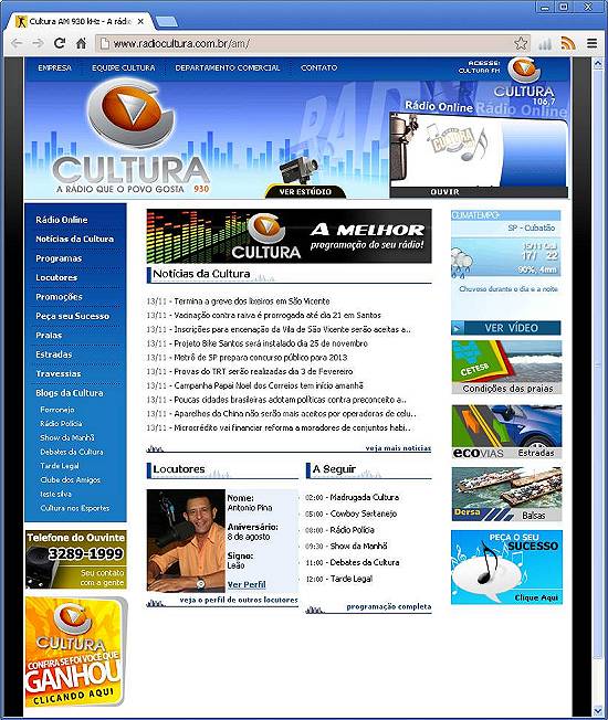 Imagem: captura de tela do site da emissora, em 13/11/2012