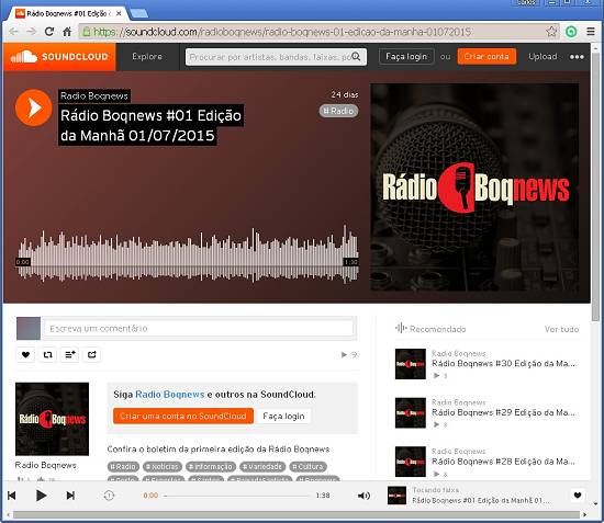 Arquivos sonoros das primeiras emissões da Rádio Boqueirão News no site Soundcloud.com