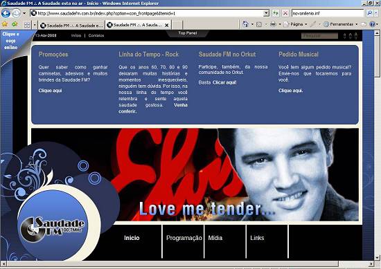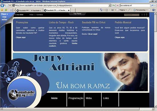 Imagens: captura de telas da emissora na Internet, acesso em 13/4/2008