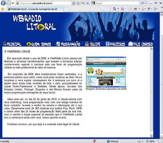 Mais uma vez, no dia 26 de junho de 2010, a Litoral retorna com novo marketing, nova programação, mas com sua antiga maneira de fazer webrádio: levando o melhor da música e informação até a sua casa. Diariamente, mais de 300