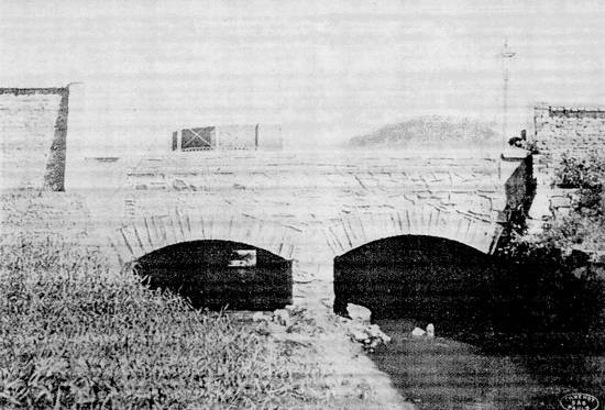 As canalizações de ferro para água e gás passam sob o passeio das pontes, em caixas