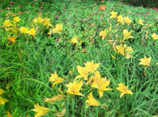 mais predominantes são os lírios e os biris (conheça algumas nos quadros). Mas há ainda coreopsis, azulzinha, mavavisco, roheo,