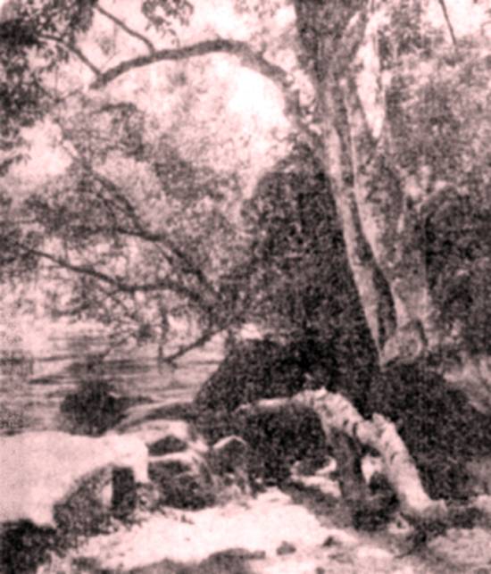 Sentado numa tora, cigarro de palha preso entre os dedos calejados, olhos azuis fixos em um ponto qualquer, ele