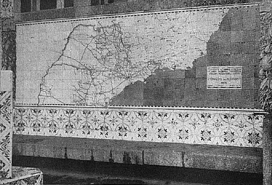 azulejo de um dos pousos a frase: "As grandes linhas férreas de penetração de pouco valem sem todo um sistema de bons caminhos por onde possam vir às estações os produtos de toda sorte. A estrada de rodagem é hoje em toda parte do mundo
