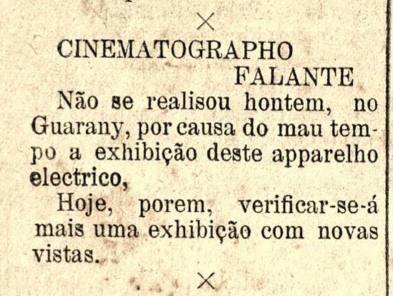 Em 1904, o Theatro Guarany comparou o antigo cinematógrafo Lumière com o novo aparelho falante