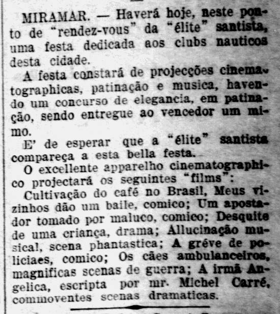 O clima ruim prejudicou a primeira exibição santista do Cinematógrafo Falante, no Guarany