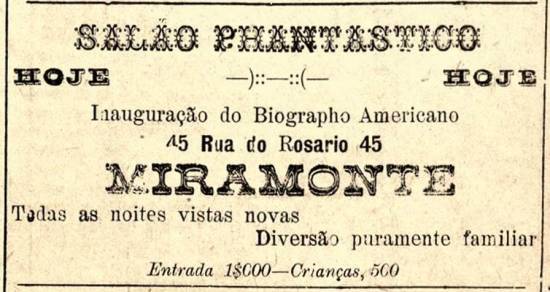 Em 1904, o Salão Phantastico/Miramonte anunciava a inauguração do 'Biógrafo Americano'