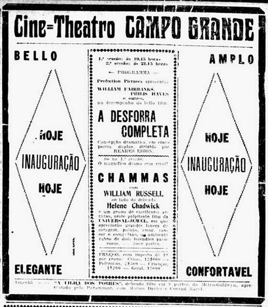O Cine Campo Grande foi inaugurado em 31/10/1926