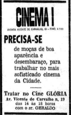 Entre os anúncios de filmes nas páginas dos jornais, aparecia um aviso de contratação de "moças de boa aparência e desembaraço, para trabalhar no mais sofisticado cinema a Cidade".