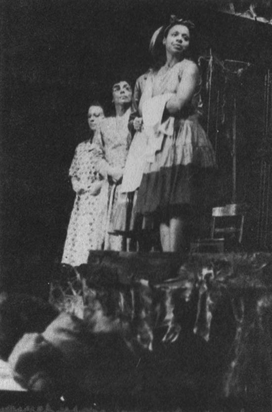 Terezinha Tadeu, Adolfo Andrade, Cristina Talasca em Lugar de Padre, encenação do TEVC, Teatro Estudantil Vicente de Carvalho