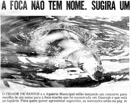 "ESCOLHA O NOME DA FOCA' - é o tema do concurso que o CIDADE DE SANTOS e o Aquário