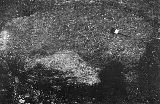 constituídos de granito embrichítico, encontrados in loco em diversos setores do sítio, foram utilizados como base de assentamento para