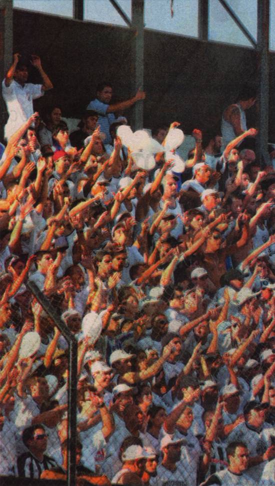 A torcida canta a marcha Leão do Mar e o hino Glória ao Santos FC