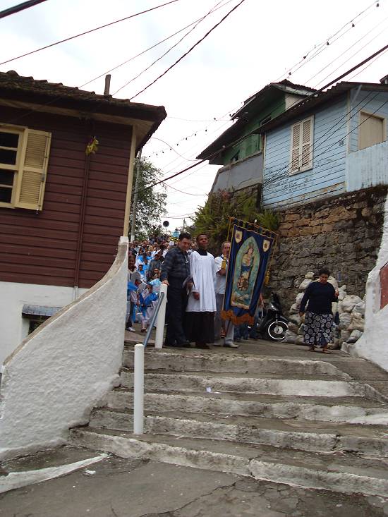 Santo António do Valongo e de lá para a Zona Noroeste, para a Igreja de Nossa Senhora de Fátima, igrejinha da Sagrada Família que ainda era de madeira, saindo a procissão em um domingo de tarde para a Igreja de Santa Margarida, e à noite para a