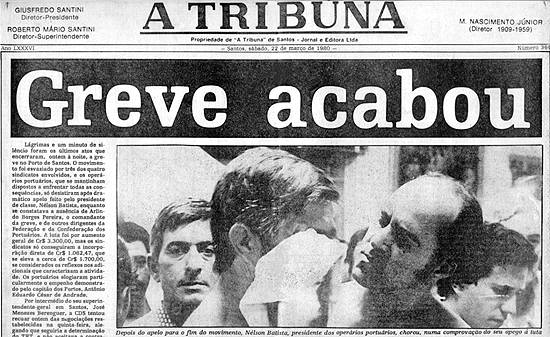 palavras definiam a manchete do jornal santista A Tribuna: