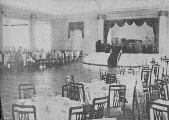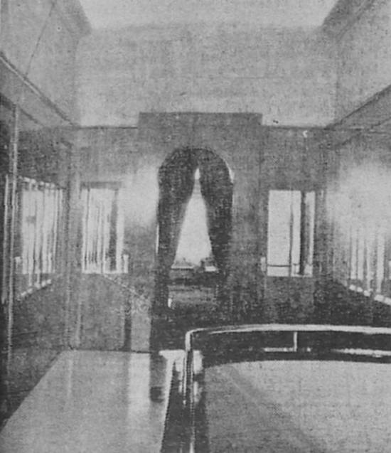 na mesma disposição, estão o salão de baile, vendo-se ao fundo o recinto destinado à orquestra, com capacidade para 40 músicos, e o bar com a