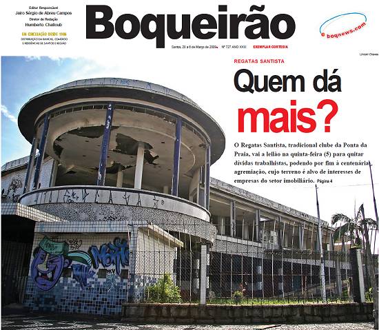 depredação de seu patrimônio, o Clube de Regatas Santista já tem data, horário e local para ir a leilão: quinta-feira (5), às 13 horas, no Fórum