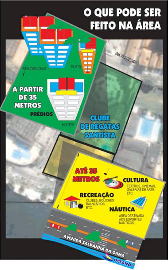imagem da Ponta da Praia, aponta que a área que se estende a 35 metros das avenidas da orla para dentro (chamada de Faixa A), não pode ter