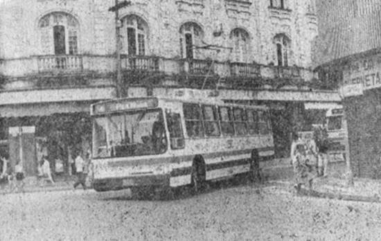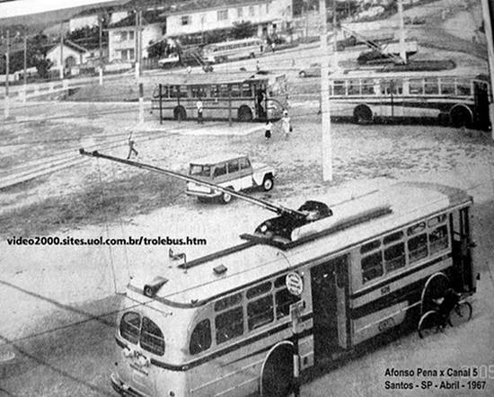 Canal 5, vê-se em primeiro plano o trólebus da linha 45 (Avenidas Conselheiro Nébias e Afonso Pena). Os outros dois estão alinhados no ponto final