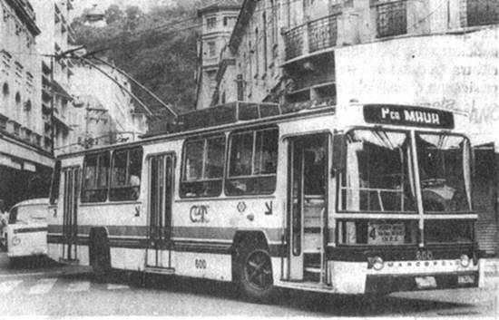Trólebus prefixo 600, com carroceria Marcopolo, na