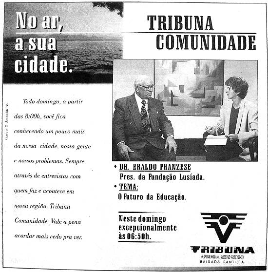 publicidade em Santos é um dos melhores que já conheceu. E espera que a TV Tribuna seja precursora de uma nova era para a Cidade".