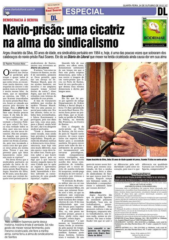 Social (Dops) e ficou 75 dias aprisionado no navio Raul Soares. Primeiro ficou preso no próprio Dops, que se localizava no prédio do