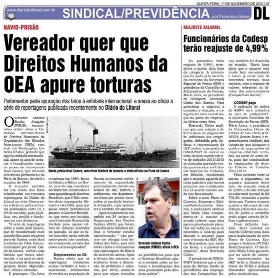 que aquela entidade internacional apure os atos de torturas e humilhações contra os presos do navio-prisão Raul Soares, que durante seis