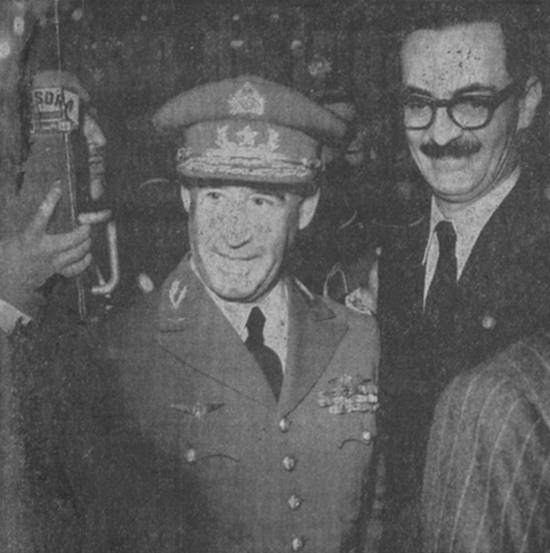 À chegada à Praça Mauá, em frente às escadarias do Paço Municipal, o general Craveiro Lopes