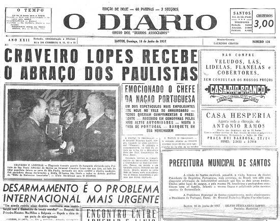 - Imponente revista militar no Gonzaga - Águas-marinhas para as senhoras Craveiro Lopes e Paulo Cunha - Homenagens no Cubatão e São Vicente