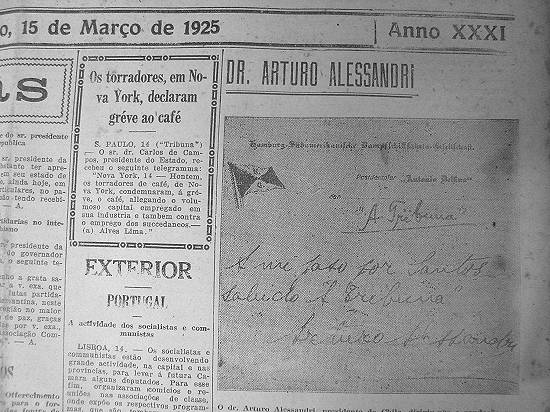 Imagem: reprodução parcial da primeira página do jornal santista A Tribuna, em 13/3/1925