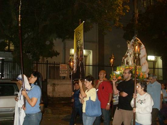 O Carmelo e uma procissão por ele organizada, pelas ruas próximas, em registro de 16 de julho de 2011: