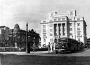 O prédio escuro dos Correios e o então novo prédio da Prefeitura, na década de 1940