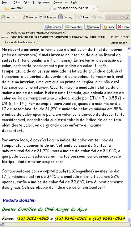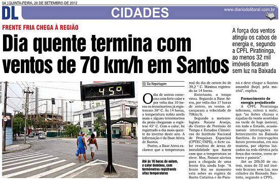 do ano, foi registrada a tarde mais quente de 2012. Segundo a Base Aérea de Santos, os termômetros chegaram a 39º