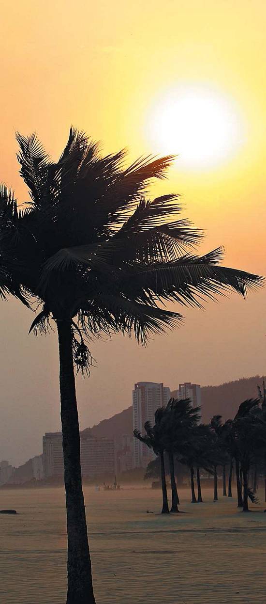 mais pródigo dos ventos santistas. Forte e abafado, o Noroeste nunca passa sem ser notado. "A impressão é de uma bolha de calor. Parece que estamos