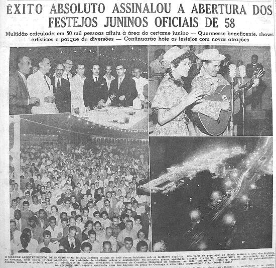 O GRANDE ACONTECIMENTO DE SANTOS - Os festejos juninos oficiais de 1958 foram iniciados sob os melhores augúrios. Boa parte da população da