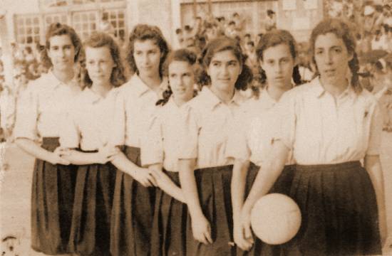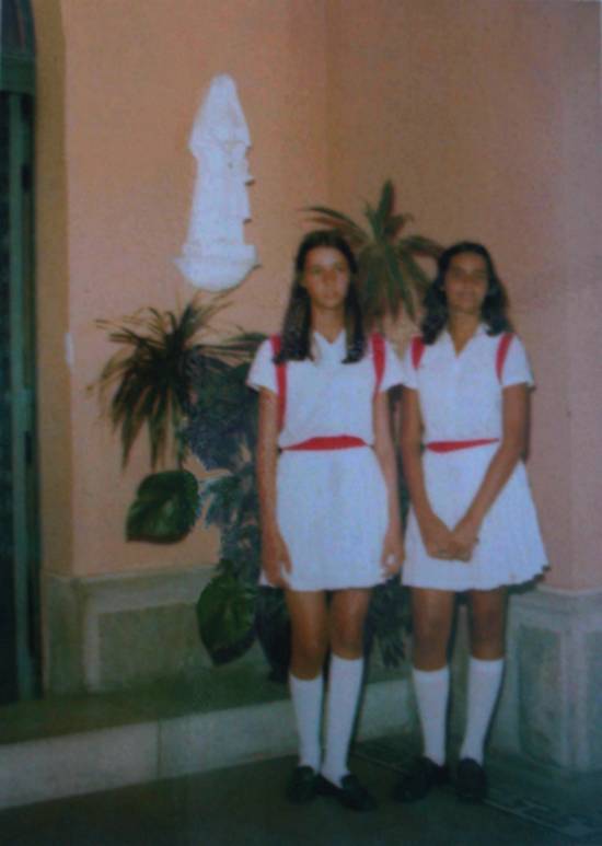 uniforme especial: saia-calça azul-marinho, de pregas, até a altura dos joelhos, que se abotoava na blusa branca".