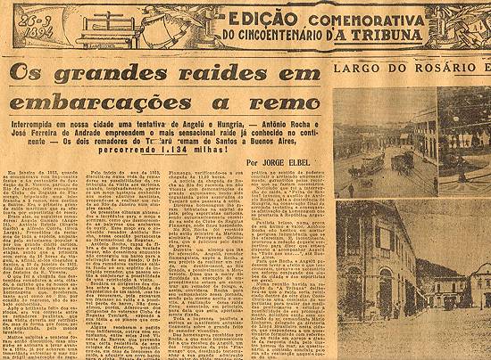 grande feito do remo brasileiro. As emissoras irradiam contínuas notícias com referência ao empolgante empreendimento, exaltando a grande prova de