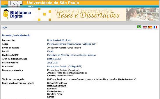 Santos: o romance de identidad portuária Navios Iluminados. 2008. f. Dissertação (Mestrado) - Faculdade de Filosofia, Letras e Ciências