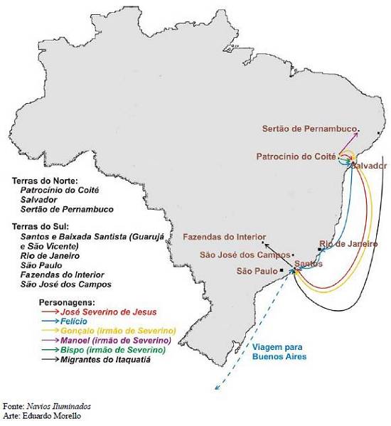 dos Campos e Rio de Janeiro; e no Nordeste: Patrocínio do Coité e Cabrobó (além de menções a Pernambuco e Bahia). Essa oposição é explorada nos