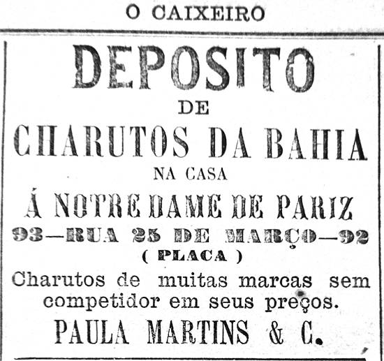 Depósito de Charutos da Bahia na casa Á Notre Dame de Pariz - de Paula Martins & C.