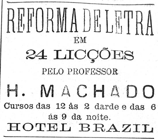 Reforma de Letra (caligrafia) pelo professor H. Machado, no Hotel Brazil