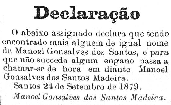 Publicado no jornal O Caixeiro - Ano I, número 3, de Santos/SP, 21 de setembro de 1879, pág.4