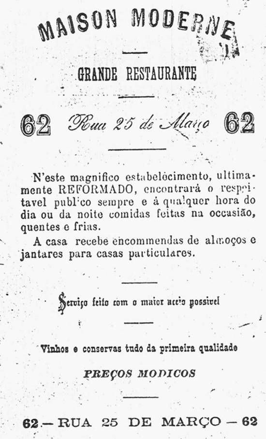Pereira & Filhos, importadores de vinhos e conhaques franceses, na antiga Rua 25 de Março, (atual Rua XV de Novembro), 17, no Centro