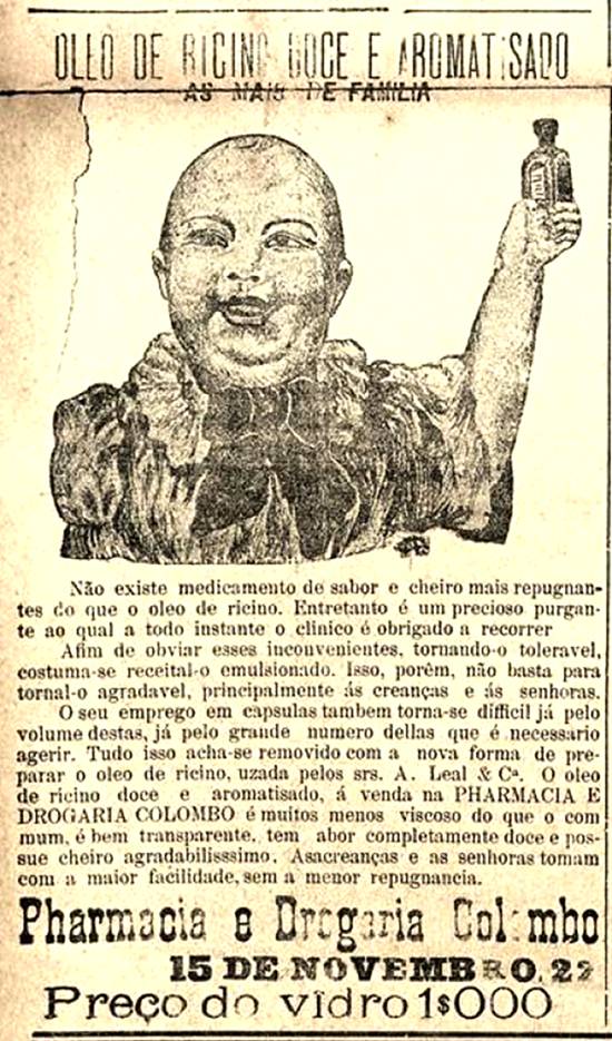 Pharmacia e Drogaria Colombo - Óleo de rícino doce e aromatizado, em nova fórmula de preparo usada por A.Leal & Cia.
