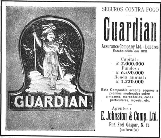 Guardian - Seguros contra incêndio - agente E. Johnston & Companhia Limitada