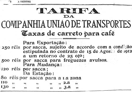 Companhia União de Transportes - taxas de carreto para café