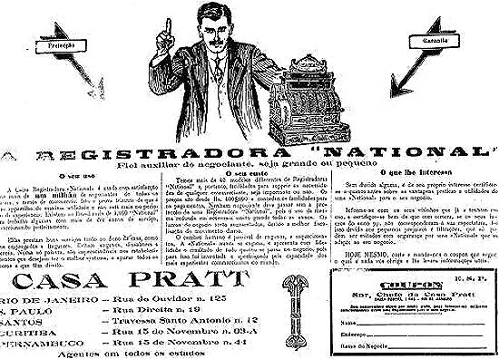 Registradora "National", na Casa Pratt, em Santos, S.Paulo, R.Janeiro, Curitiba e Pernambuco