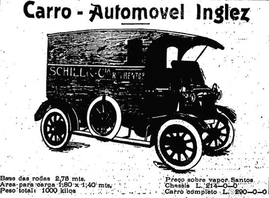 Carro-automóvel inglês, com preço para entrega no porto de Santos por Schiler & Cia.