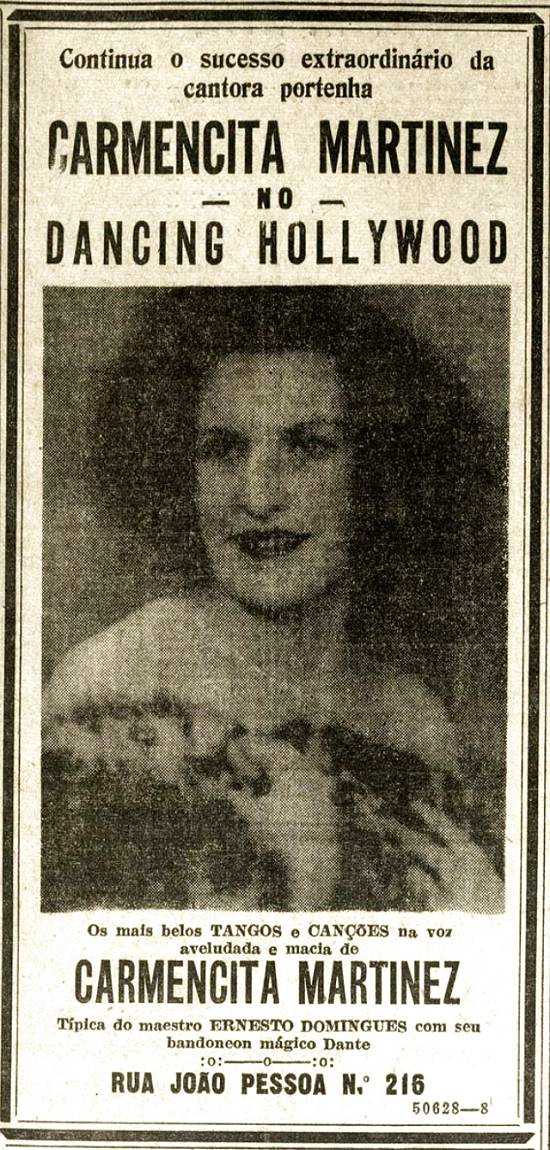 Dancing Hollywood - cantora portenha Crmencita Martinez, orquestra típica do masestro Ernesto Domingues