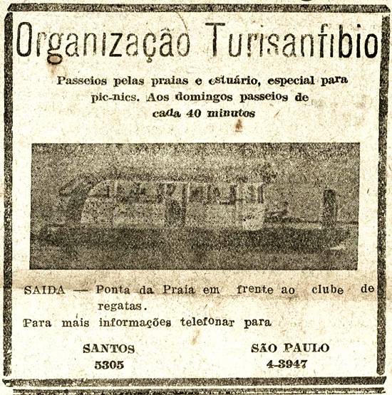 Organização Turisanfibio - "Passeios pelas praias e estuário, especial para pic-nics. Aos domingos, passeios de cada 40 minutos - Saída: Ponta da Praia, em frente ao clube de regatas"